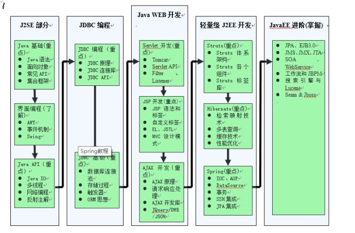 1)JAVA語言編程基礎(chǔ)部分:內(nèi)容豐富是Java知識(shí)體系結(jié)構(gòu)的核心和基礎(chǔ) 2)JDBC:提供了一種基準(zhǔn),據(jù)此可以構(gòu)建更高級(jí)的工具和接口,使Java開發(fā)人員能夠編寫數(shù)據(jù)庫應(yīng)用程序 3)JavaMail:用于電子郵件的相關(guān)的編程工作 4)JUnit:單元測試,整個(gè)變成工作測試的地位始終非常重要 5)Log4j:使我們能夠更加細(xì)致地控制日志的生成過程 6)Servlet:JavaWeb的核心 7)Struts2:JavaWeb編程中明星級(jí)的框架,優(yōu)點(diǎn)多功能強(qiáng)使編程工作更簡單,主要用于控制跳轉(zhuǎn) 8)Spring:JavaWeb編程中明星級(jí)的框架,同樣優(yōu)點(diǎn)多功能強(qiáng)使編程工作更簡單,主要用于管理對(duì)象 9)iBatis:JavaWeb編程中明星級(jí)的框架,同樣也是優(yōu)點(diǎn)多功能強(qiáng)使編程工作更簡單,主要用于程序和數(shù)據(jù)庫之間的交互 10)SQL:與數(shù)據(jù)庫交互式編程的必備工具