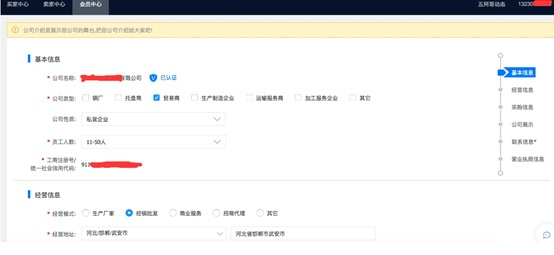 進(jìn)入用戶的會員中心,查看企業(yè)信息