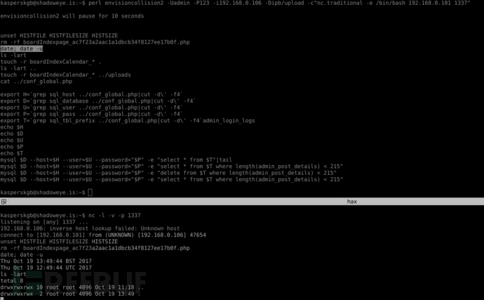 下面是一個屏幕截圖,展示了使用漏洞利用工具在IPBoard上獲得反向shell。 由于我們只有IPBoard 3.4,因?yàn)榈卿浟鞒滩煌晕覀儾坏貌恍薷穆┒蠢么a。在TAO寫的這個漏洞利用的任何版本中,IPBoard都會發(fā)送一個帶有可點(diǎn)擊鏈接的“登陸頁面”。