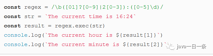 例如,在上述24小時(shí)模式中,我們定義了兩個(gè)捕獲組—— 時(shí)和分。