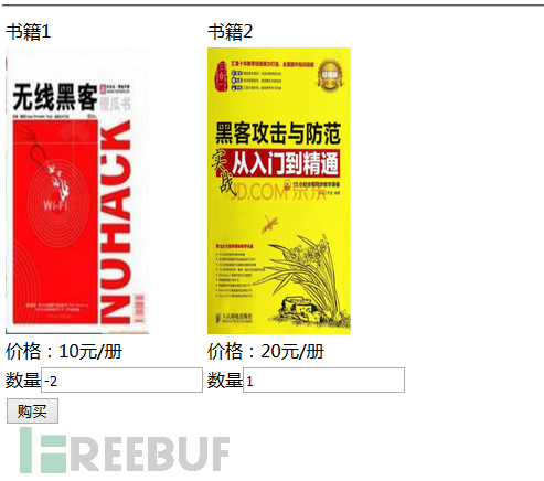 那么就購買 -2 本書籍1 1本書籍2 如果系統(tǒng)沒有校驗購買數(shù)量的話那么結(jié)算:-2 * 10 + 1 * 10 = 0元
