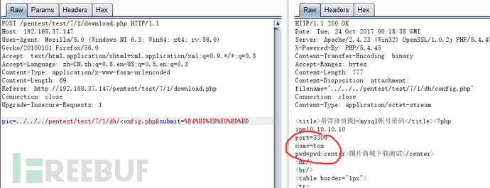 的確和上一關(guān)有點像 也是要找回mysql賬號密碼 還是先把下載的包抓下來看看 上一關(guān)的下載用的是get 本關(guān)用的post