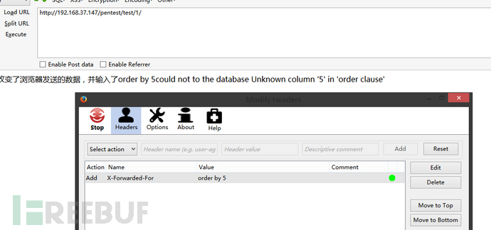 頭部的注入就想到在XFF頭上下功夫 我用了firefox的插件 Modify Headers (用burpsuite改我是不行的)與第一關(guān)沒什么差別 只是注入的地方有點不同~
