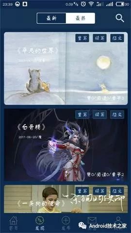 對(duì)于一款閱讀類的軟件,夜間模式是不可缺少的。最初看到這個(gè)需求時(shí)候覺得無從下手,沒有一點(diǎn)頭緒。后來通過查閱資料發(fā)現(xiàn)Android官方在Support Library 23.2.0中已經(jīng)加入了夜間主題。也就是只需要通過更換主題便可實(shí)現(xiàn)日間模式和夜間模式的切換。下面截取項(xiàng)目實(shí)現(xiàn)的夜間模式效果圖: