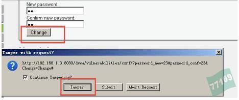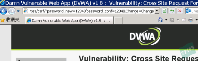 修改完密碼,觀察到url的地址變成了http://192.168.1.3:8080/dvwa/vulnerabilities/csrf/?password_new=1234&password_conf=1234&change=Change