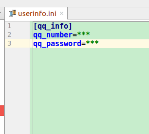 QQ賬號(hào),QQ密碼存儲(chǔ)在userinfo.ini文件中,然后用configparser將其讀取出來