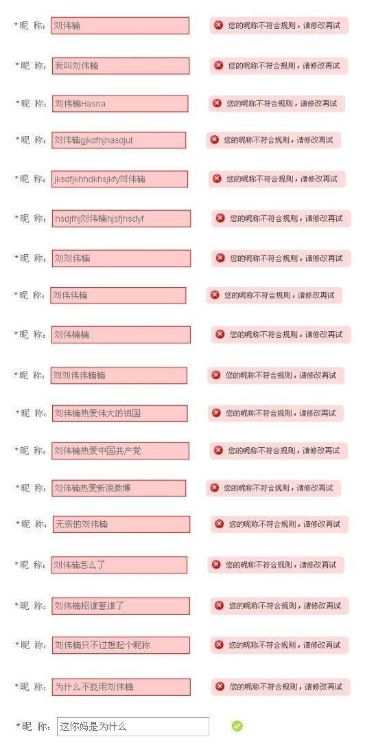 更改昵稱為“劉偉楠”也同樣無法實(shí)現(xiàn)