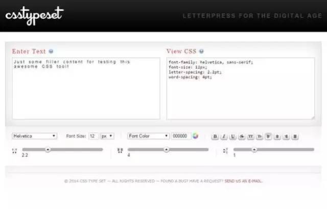 你是否曾經(jīng)想過實(shí)驗(yàn)?zāi)撤N排版風(fēng)格,看看它看上去是什么樣?CSS Type Set就可以幫你完成這件事情。你只需要輸入一些文本,然后更新字體、字號(hào)、顏色、字間距和其他一些變量,一切就大功告成了。