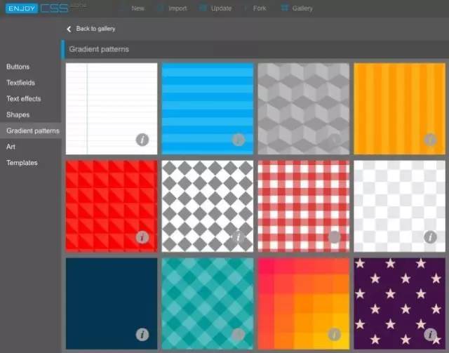 你甚至可以用它來測試Adobe字體,并且給字體添加各種效果,來觀察它們在瀏覽器中的樣子。但是Enjoy CSS最好的功能則是gallery,里面有著許多免費(fèi)的代碼段,和預(yù)設(shè)的按鍵、輸入框和其他元素的模板。