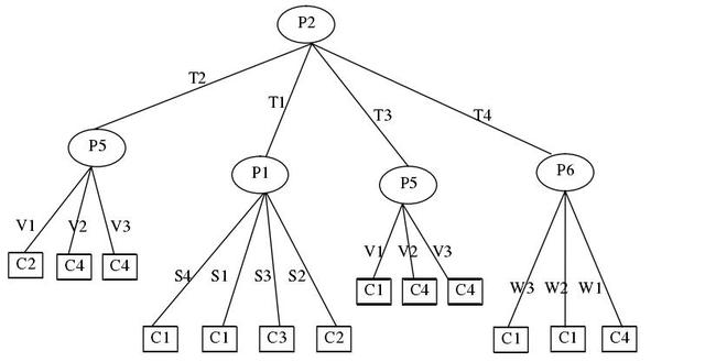 以下是根據(jù)算法得到的索引圖,例如P2因素為T2時(shí),下級(jí)分析為P5,其中C1、C2、C3、C4分別對(duì)應(yīng)